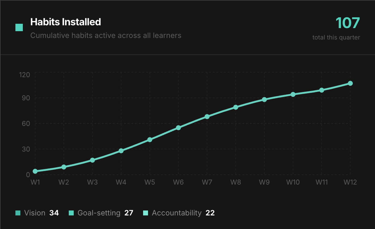 85% of success at the work place is attributed to soft skills and only 15% to technical skills (Stanford, Harvard). With SkillsGym, you're building strong "soft" skills. Basically by using the same principles that make you stronger at the gym; building small evidence-based habits that have exponential impact over time.